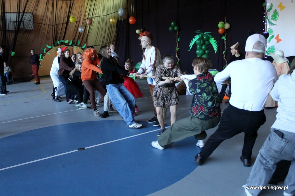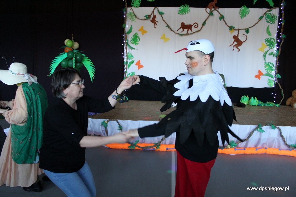Tym razem pojechaliśmy do afrykańskiej dżungli, gdzie na palmach rosną kokosy i banany a małpy na lianach skaczą ponad głowami. Przyjechała do nas Młodzież z ZS nr 3 z Wyszkowa. Fantastyczna Młodzież wraz z Opiekunami bardzo zaangażowana i radosna. BAL był wyśmienity, wszyscy świetnie się bawili. Wybór króla i królowej balu był trudny …ale zrobiliśmy dwie kategorie: Zosia z Mariuszem czyli biedronka z dinozaurem zostali książętami balu a w dorosłym wydaniu zwyciężyła Ania i Mateusz. Przyjechało też kilku podróżników ze sprzętem. DZIĘKUJEMY!