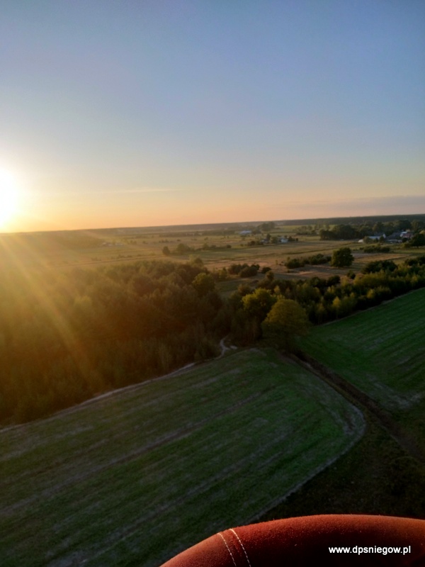 To był wymarzony DZIEŃ, wymarzona pogoda i spełnione MARZENIA! Super sprawa: dmuchanie balonu, ustawienie kosza, wejście do niego i cudowny lot prosto do nieba… Wszyscy byli bardzo zainteresowani i u nas i na trasie przelotu. Widoki niepowtarzalne; i na koniec piękny zachód słońca.