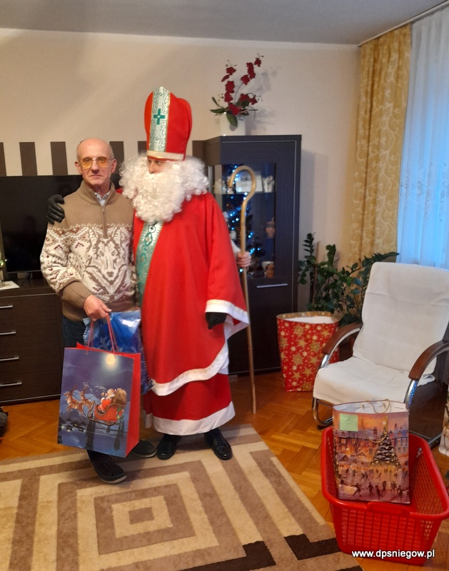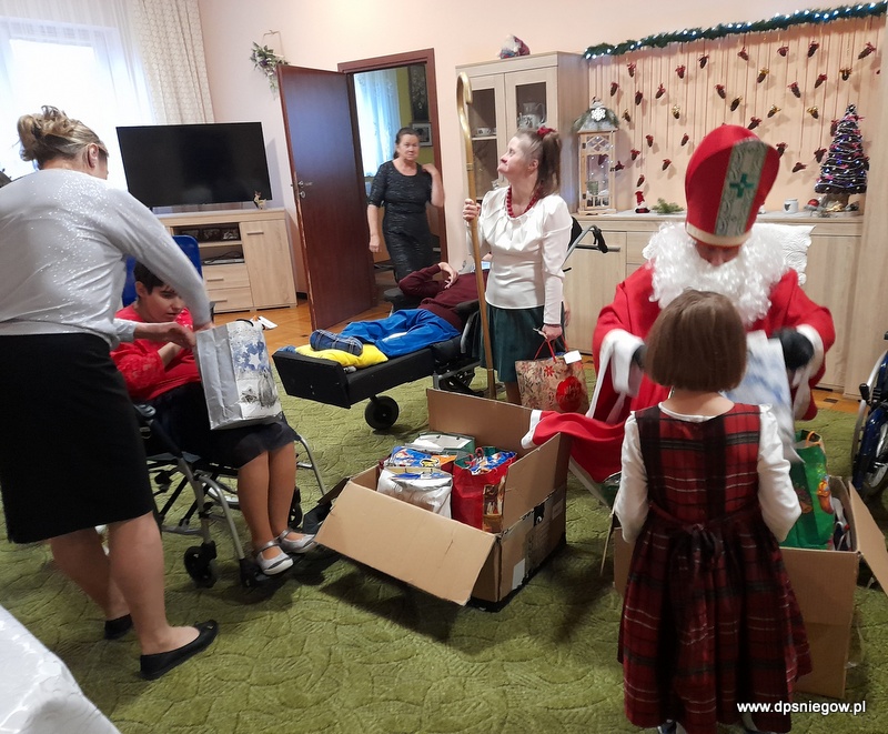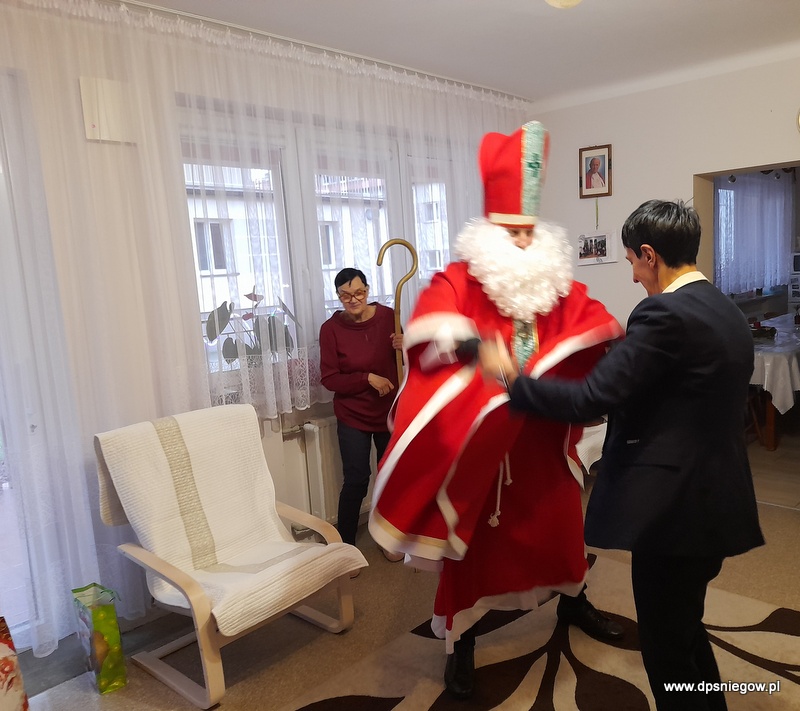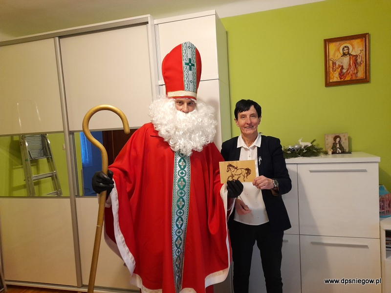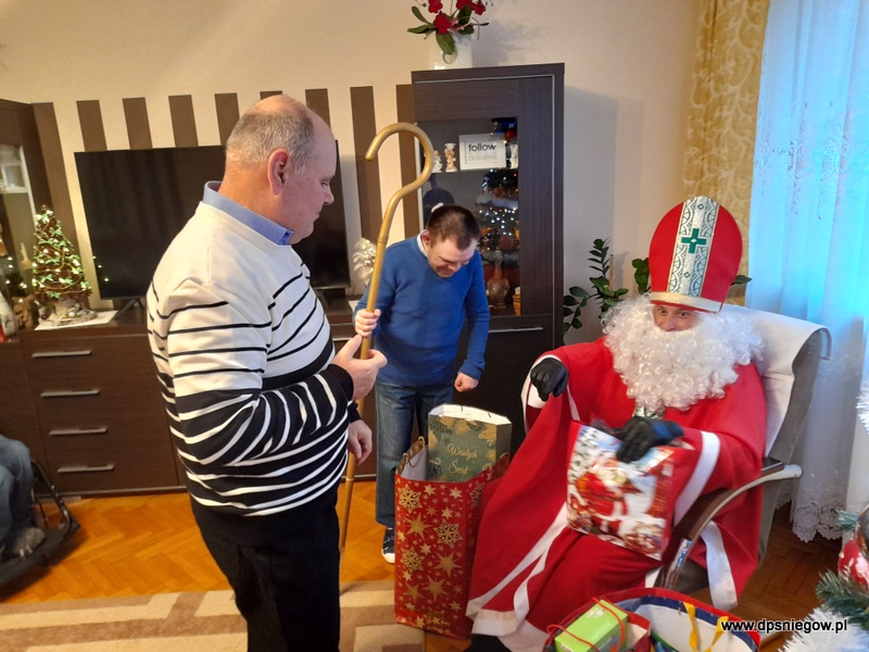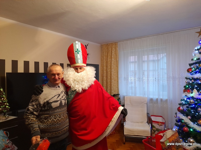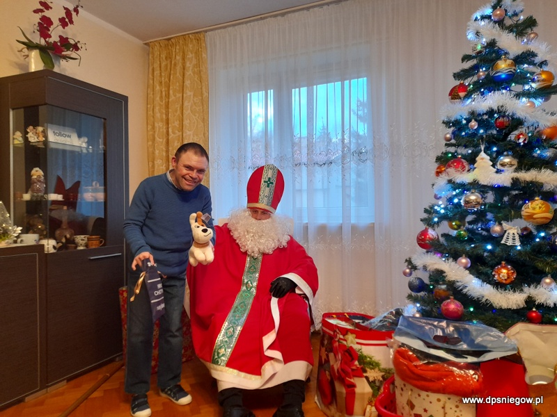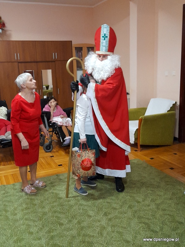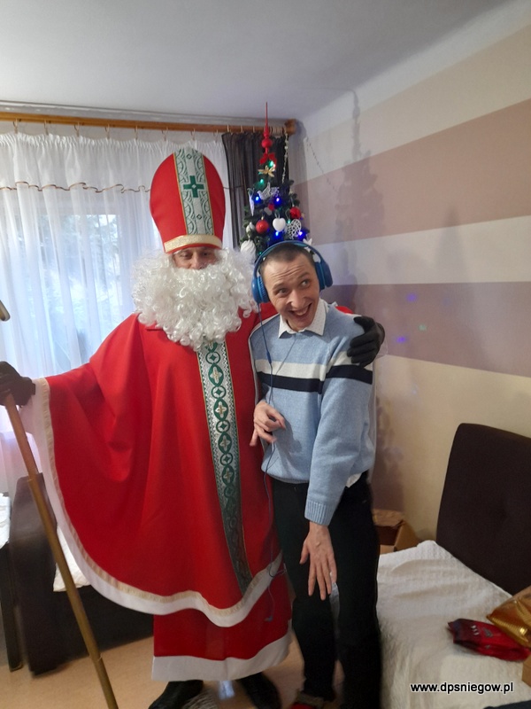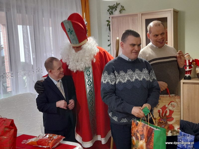 Tradycyjnie w Boże Narodzenie przychodzi do naszych Mieszkańców Mikołaj. Niestety śniegu nie ma więc przyszedł na pieszo. radości było wiele i wszyscy Starsi i Młodsi czekali na prezenty. Trzeba zaznaczyć, że wcześniej pisali listy do św. Mikołaja więc oczekiwanie było ogromne. Mikołaj w tym roku był energiczny i zaangażowany, nawet zatańczył z Jadwigą na jej życzenie… Dziękujemy i zapraszamy za rok!