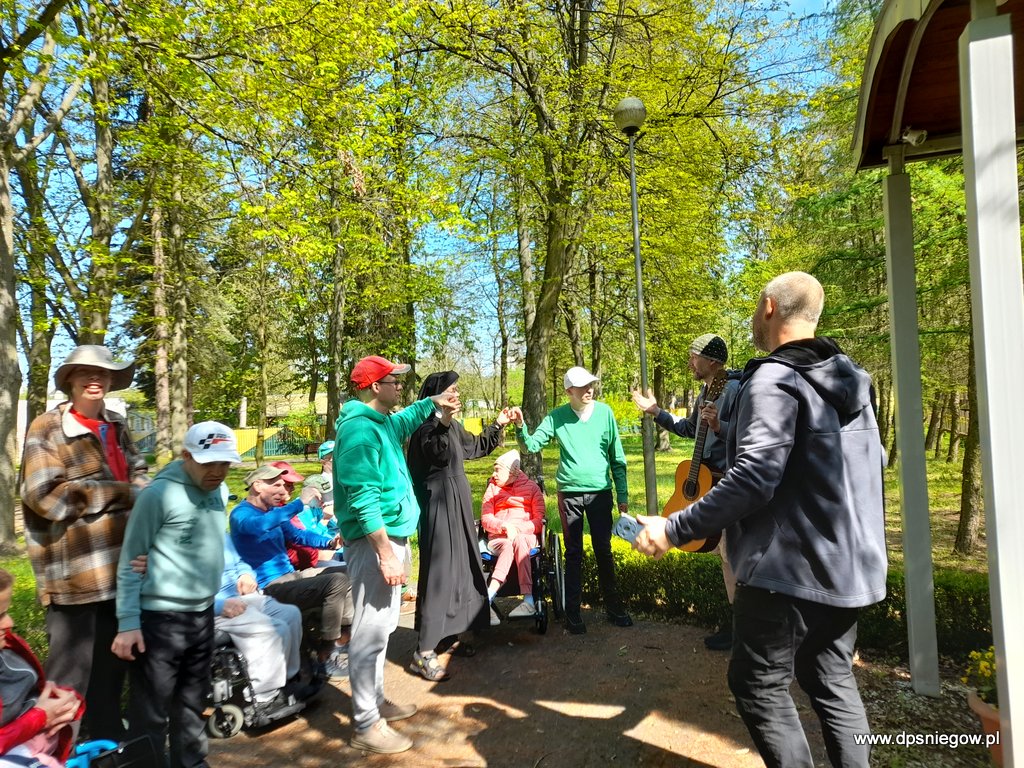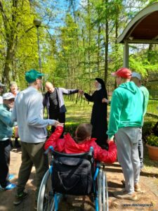 To było bardzo ciekawe spotkanie. Odwiedziło nasz Dom dwóch Pielgrzymów, którzy (jeden na rowerze a drugi pieszo) przemierzają trasę z Rygi na Łotwie do Rzymu. Spotkaliśmy się przy figurze naszej Pani i Królowej, by wspólnie modlić się i dziękować Jej za to, ze jest naszą Matką. Naszych Pielgrzymów Marcina i Artura oddaliśmy w opiekę najlepszej z Matek i życzyliśmy bezpiecznej, szczęśliwej drogi.
