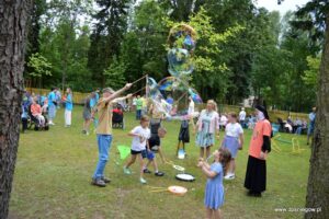 7 czerwca odbył się Muzyczny Piknik Rodzinny. każdego roku przyjeżdża spora grupa Rodziców i Rodzeństwa; jednak ten rok był rekordowy i ogromnie się z tego cieszymy. Było to spotkanie iście wielopokoleniowe. Każda Rodzinka przygotowała przebój muzyczny lat 70 lub 80 i potem wykonała go na scenie. To było fantastyczne; czego nie dośpiewali to dotańczyli a dodatkowo jeszcze stroje zrobiły furorę. Gościem dodatkowym była grupa Młodzieży z Warszawy wraz z ks. Jarosławem, którzy również przygotowali muzyczny hit. Po poczęstunku przeszliśmy na nasz plac zabaw na dalszą część spotkania. Były bańki mydlane, malowanie twarzy oraz jazda konna dla chętnych. Oczywiście trwały tańce przy pięknych polskich przebojach. Bardzo dziękujemy wszystkim RODZINOM, którzy tak licznie odwiedzili nasz Dom i wszystkim tym, którzy pomogli nam w organizacji tego pikniku.