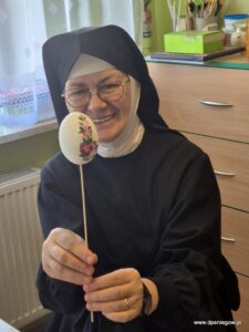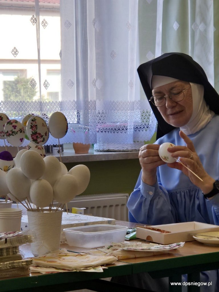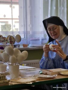 Dnia 6 kwietnia przyjechała do nas grupa zaangażowanych Pań z parafii św. Piotra i Pawła w Warszawie. Kilkoro naszych Mieszkańców również pomagało przy tworzeniu pięknych pisanek – malowaniu i dekorowaniu wydmuszek na kiermasz, który się odbył 13 kwietnia w Niedzielę Palmową w parafii w Pyrach. Bardzo dziękujemy Wszystkim PARAFIANOM za ich otwarte SERCA.