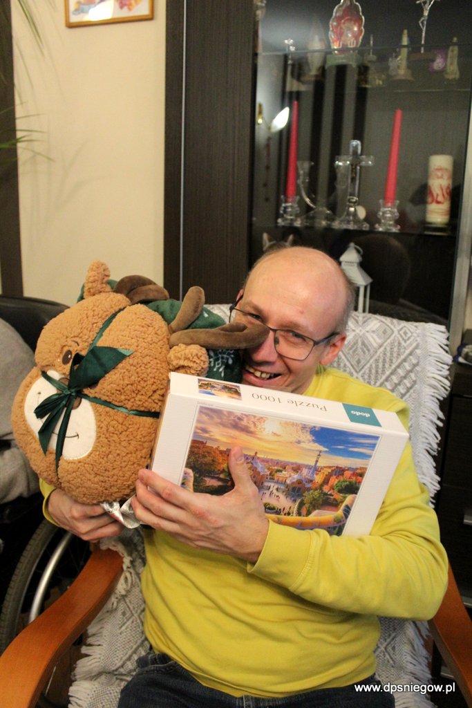 Przede wszystkim DZIĘKUJEMY. Ciągle o nas pamiętacie i zawsze co roku, gdy zbliża się Boże Narodzenie nasi Mieszkańcy czekają na panią Jolę naszą listonoszkę, pomagają kurierom nosić paczki i nie mogą się doczekać tej chwili, gdy prezenty będą trzymać w swoich dłoniach. To jest RADOŚĆ dla nich ale i dla nas opiekunów, którzy im towarzyszymy.