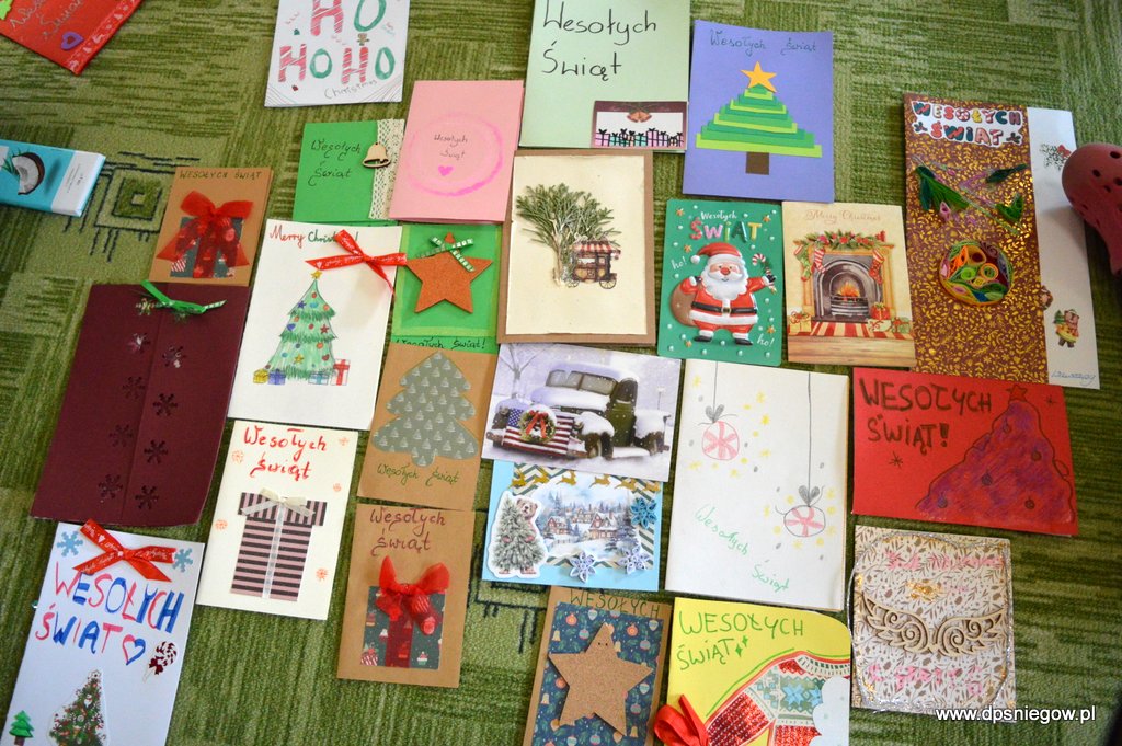 Czas leci jak szalony. Już prawie koniec stycznia a u nas tak dużo się działo, że dopiero teraz mogliśmy poczytać Świąteczne Kartki, które otrzymaliśmy. Są piękne, większość wykonanych samodzielnie, ręcznie. Niektóre to wręcz dzieła sztuki. Bardzo DZIĘKUJEMY wszystkim; Dzieciakom z Przedszkoli, Uczniom ze szkół podstawowych i średnich oraz innym nadawcom. Nie sposób wymienić Wszystkich i nie sposób pokazać wszystkich kartek i prezentów. Kochani bardzo za wszystko dziękujemy a przede wszystkim za pamięć o nas. My też pamiętamy i serdecznie pozdrawiamy.
