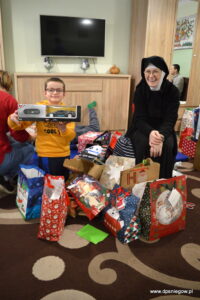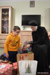 W Rodzince I czekaliśmy chwilę, aż nasz szkolniak Mariusz wrócił ze szkoły. Skakał z radości i nie mógł uwierzyć, że dostał tyle prezentów… Pięknie dziękujemy za świetnie dobrane prezenty. Poduszeczki, kocyki, zegarki, klocki lego i słodkie ciasteczka. Mniam, mniam