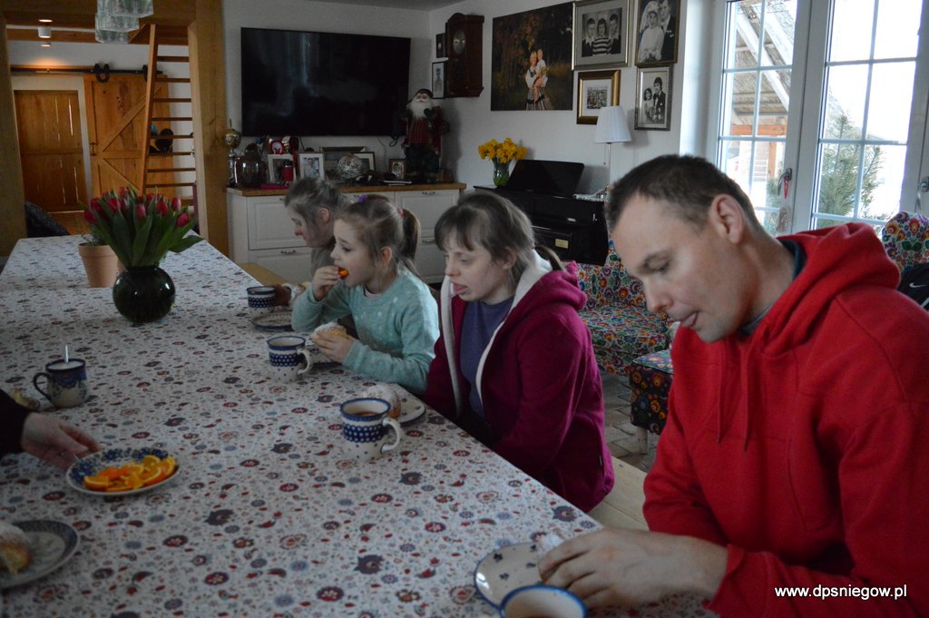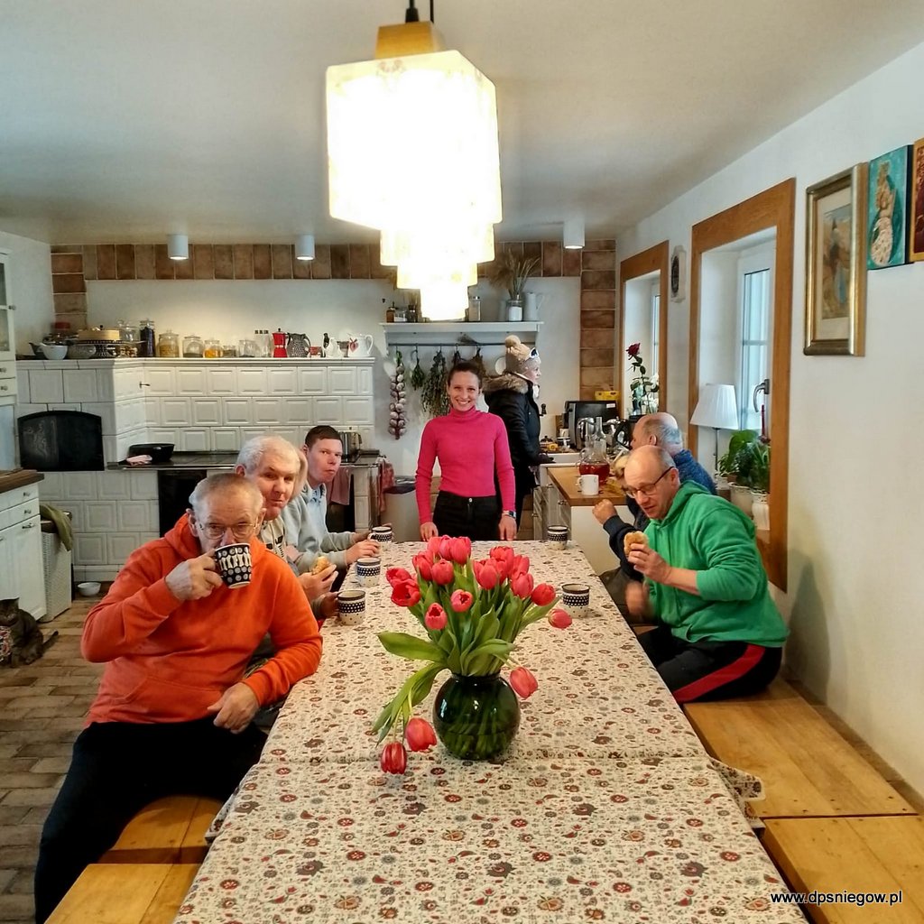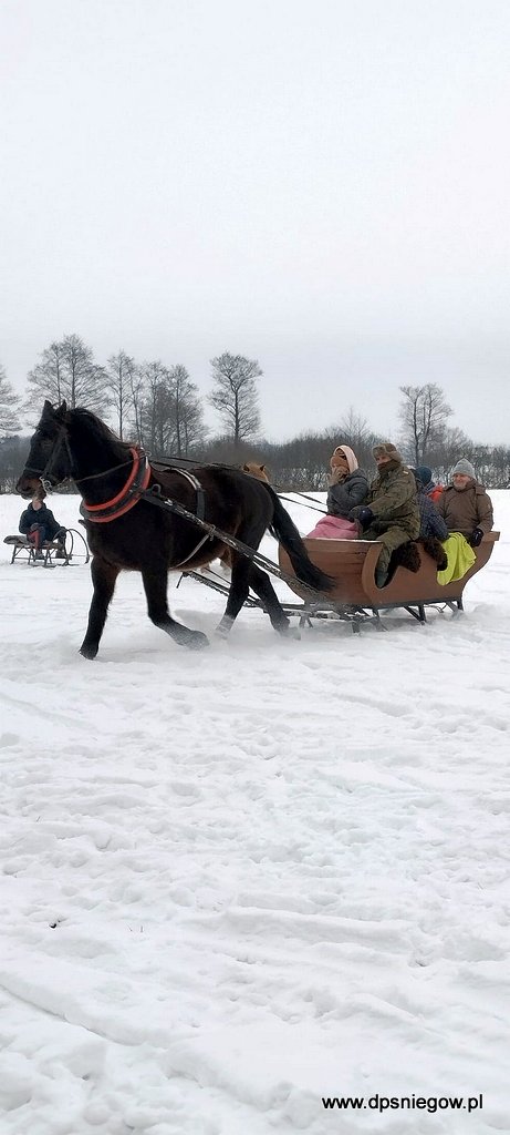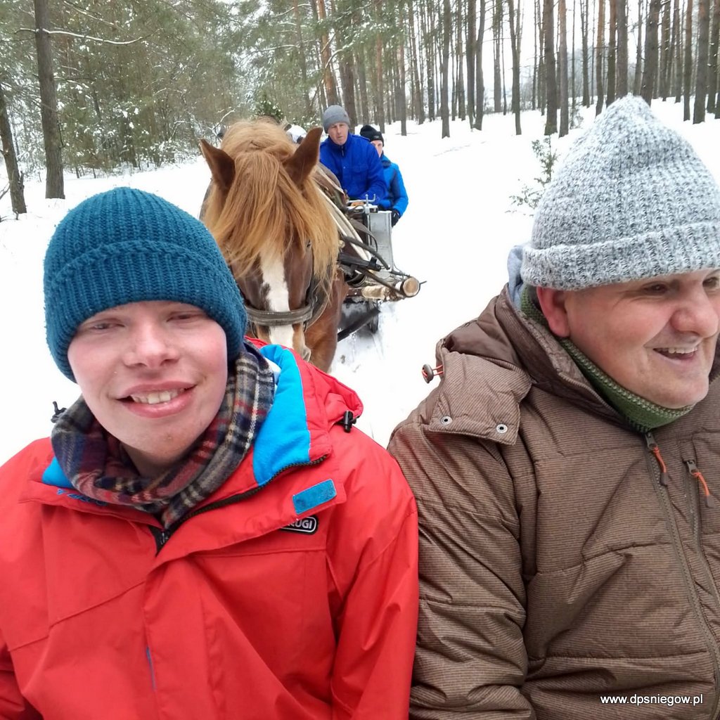 Zawitała do nas prawdziwa zima; spadło dużo śniegu, mróz skrzy się na drzewach i słońce świeci rozjaśniając wszystko – jest pięknie. Wybraliśmy się na KULIG, a przy okazji były inne ciekawe atrakcje. Kulig był fantastyczny – dla wielu Mieszkańców to niezapomniane przeżycie. Cudownie pyszne bułeczki drożdżowe; szycie poduszek pachnących lawendą oraz spotkanie ze zwierzętami. Wszyscy byli szczęśliwi i bardzo zadowoleni.